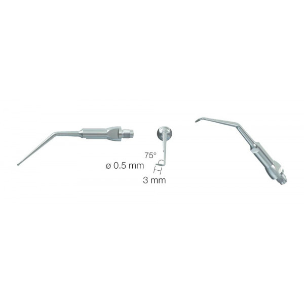 Для использования в каналах моляров левой верхней челюсти и нижней правой диаметр 0.5 мм, угол 75°